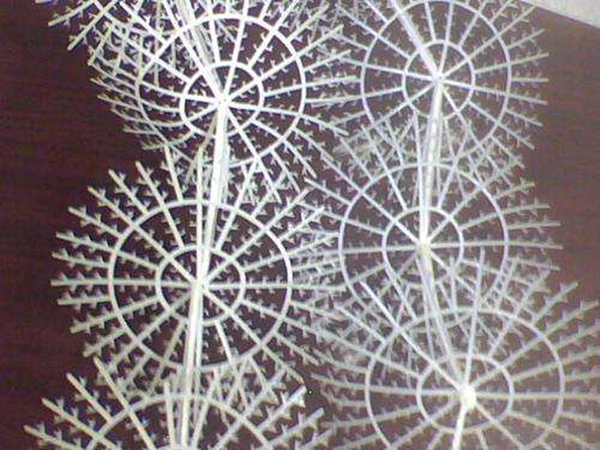 半軟性填料具有散熱性能高,阻力小,布水、布氣性能好,易長膜,又有切泡作用。它所用的材料有聚丙烯、聚乙烯制成。用于污水、廢水處理工程,配套于接觸氧化塔、氧化池氧化槽等設備。 單元直徑一般有Φ120、Φ150、Φ200,中心繩有塑料繩及纖維繩,規(guī)格可根據設計部門及用戶而定。